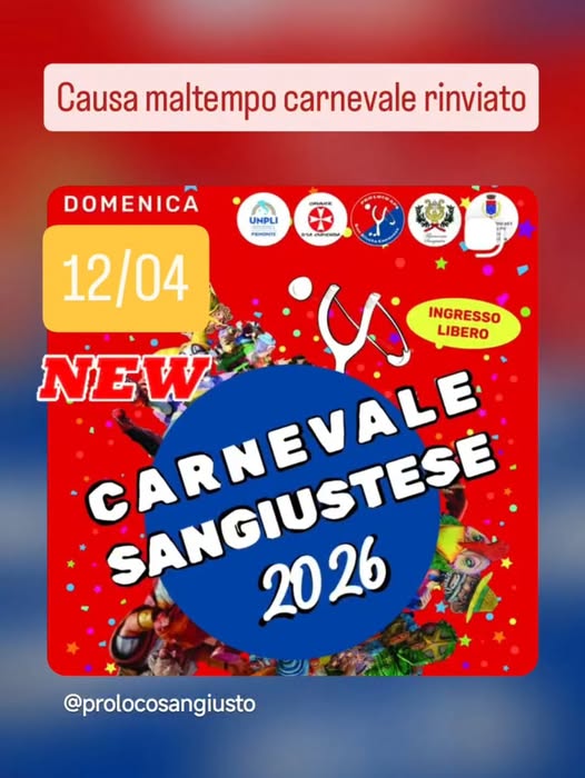 Nel volantino allegato troverai tutte le informazioni sugli eventi che comporranno il Carnevale Sangiustese 2026
